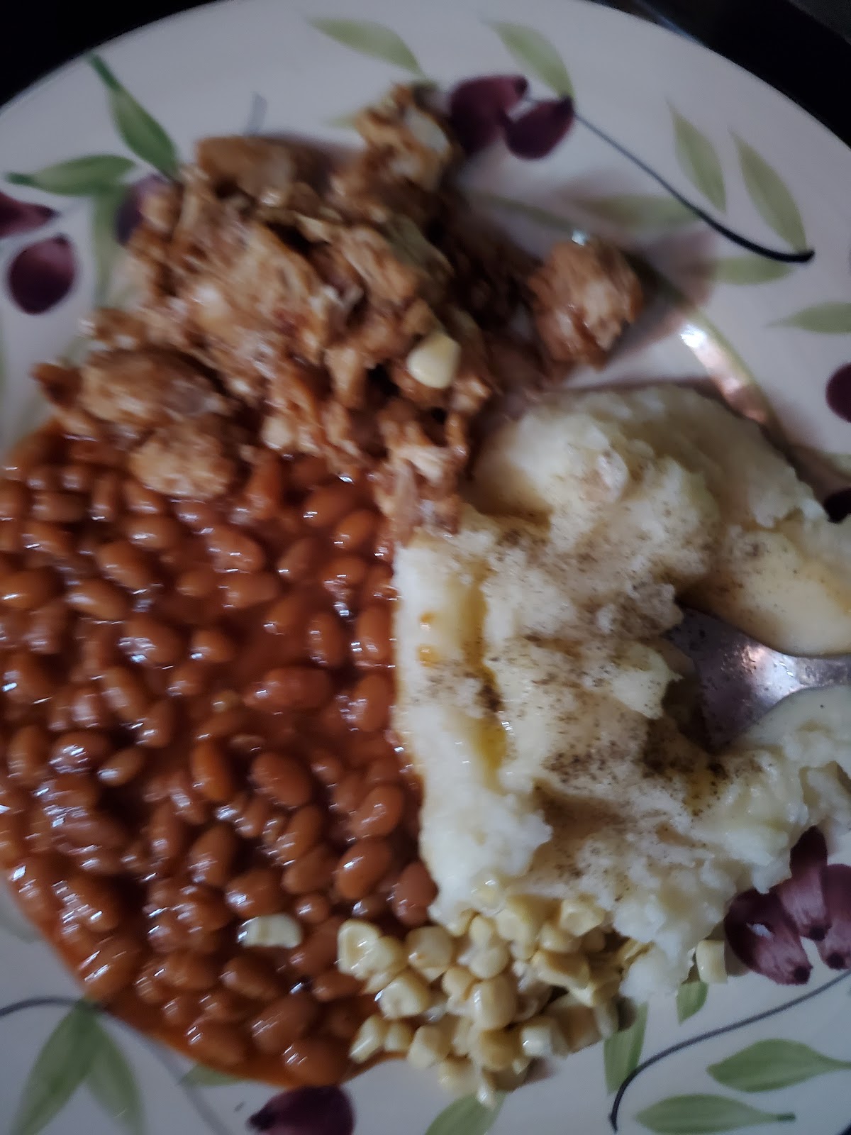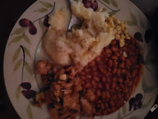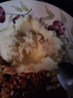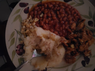 *SWEET HONEY:KRAFT:B-B-Q CHICKEN:PULLED CHICKEN,WITH MASHED POTATOES&VEGGIE BEANS:BUSH'S&OH,YAH:PURE WHITE HANOVER CORN.