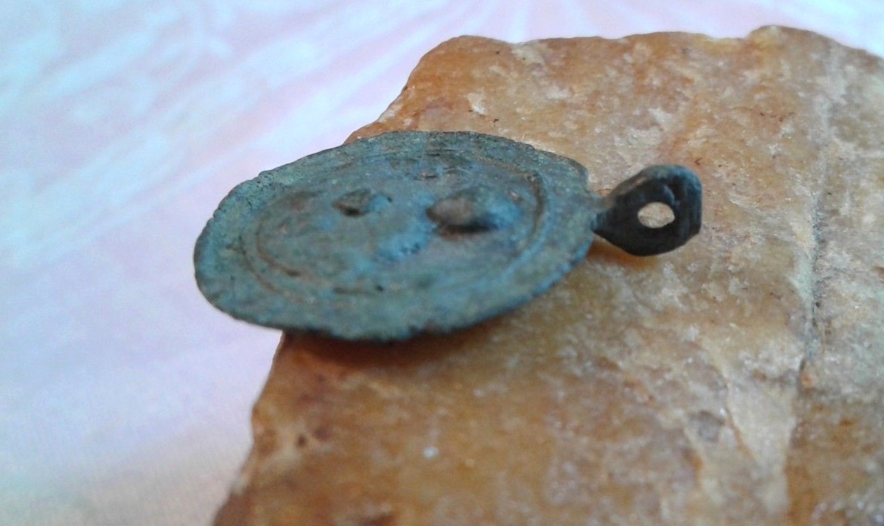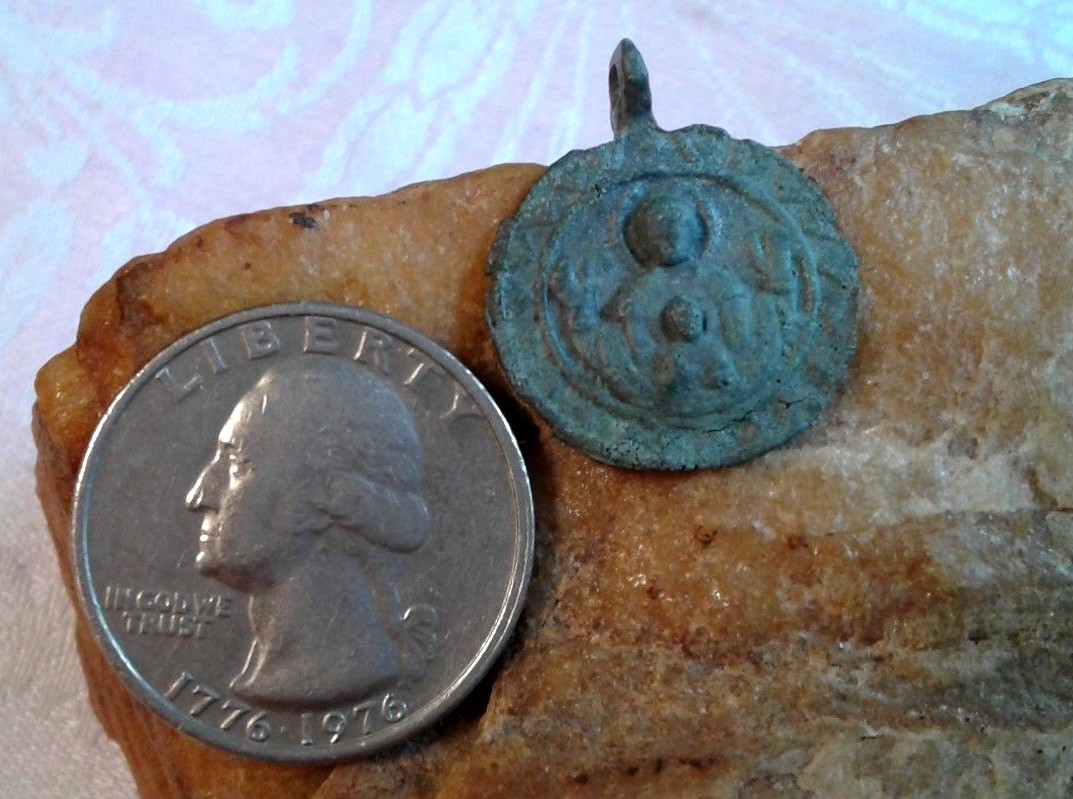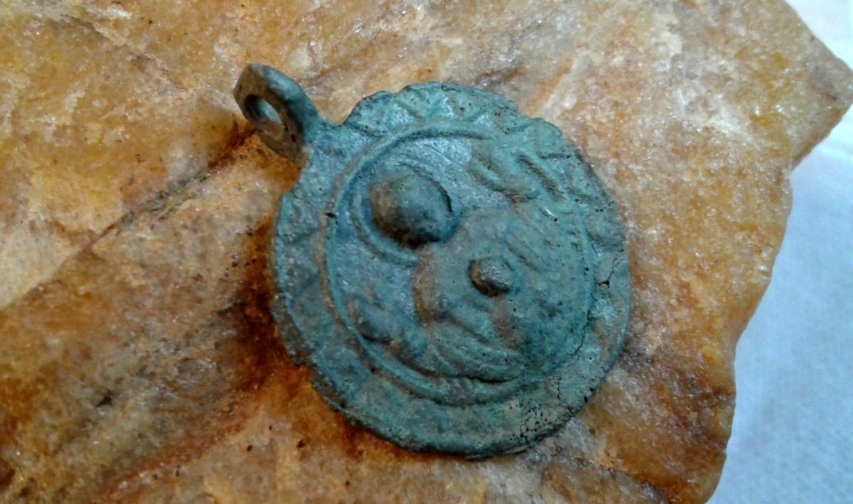 RARE 12-13th CENT. ORTHODOX MEDAL VIRGIN MARY MOTHER OF GOD OF THE SIGN PANAGIA