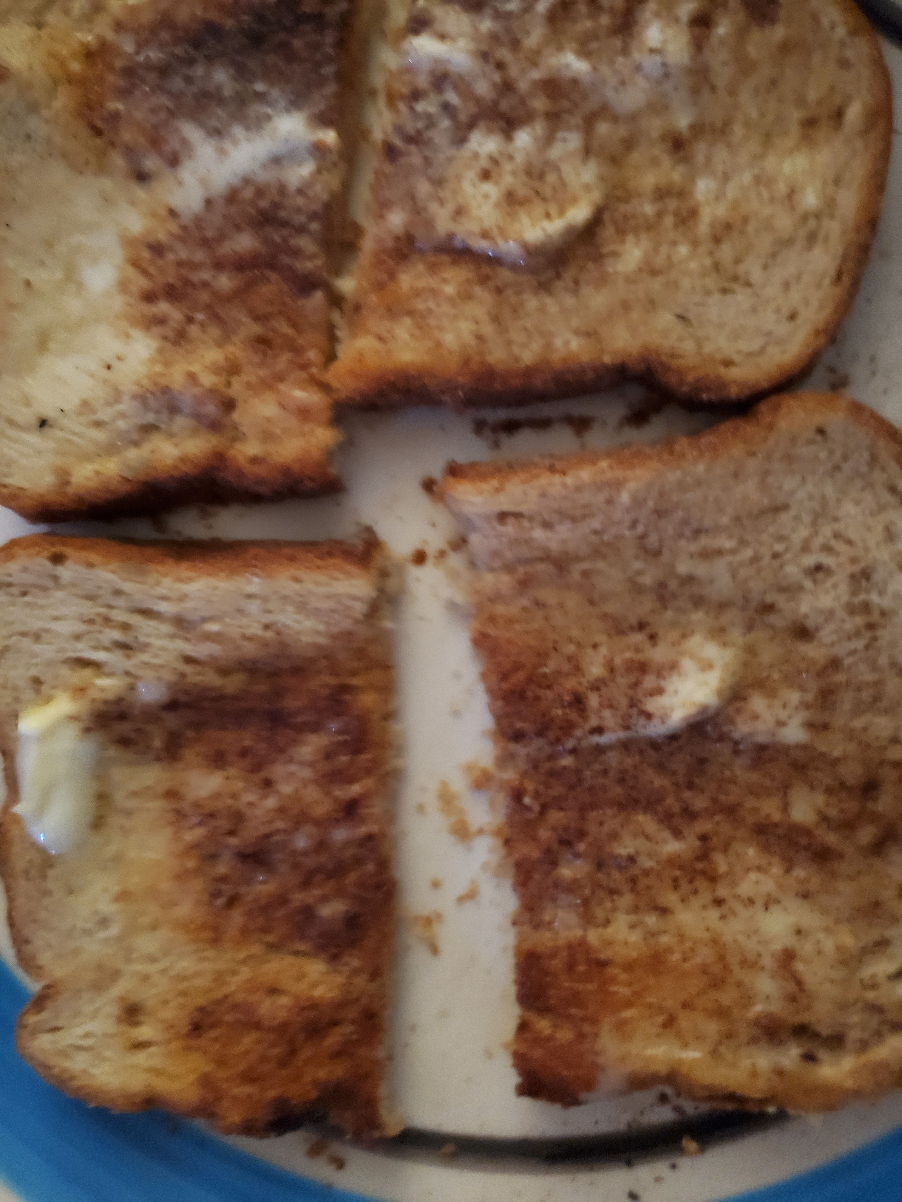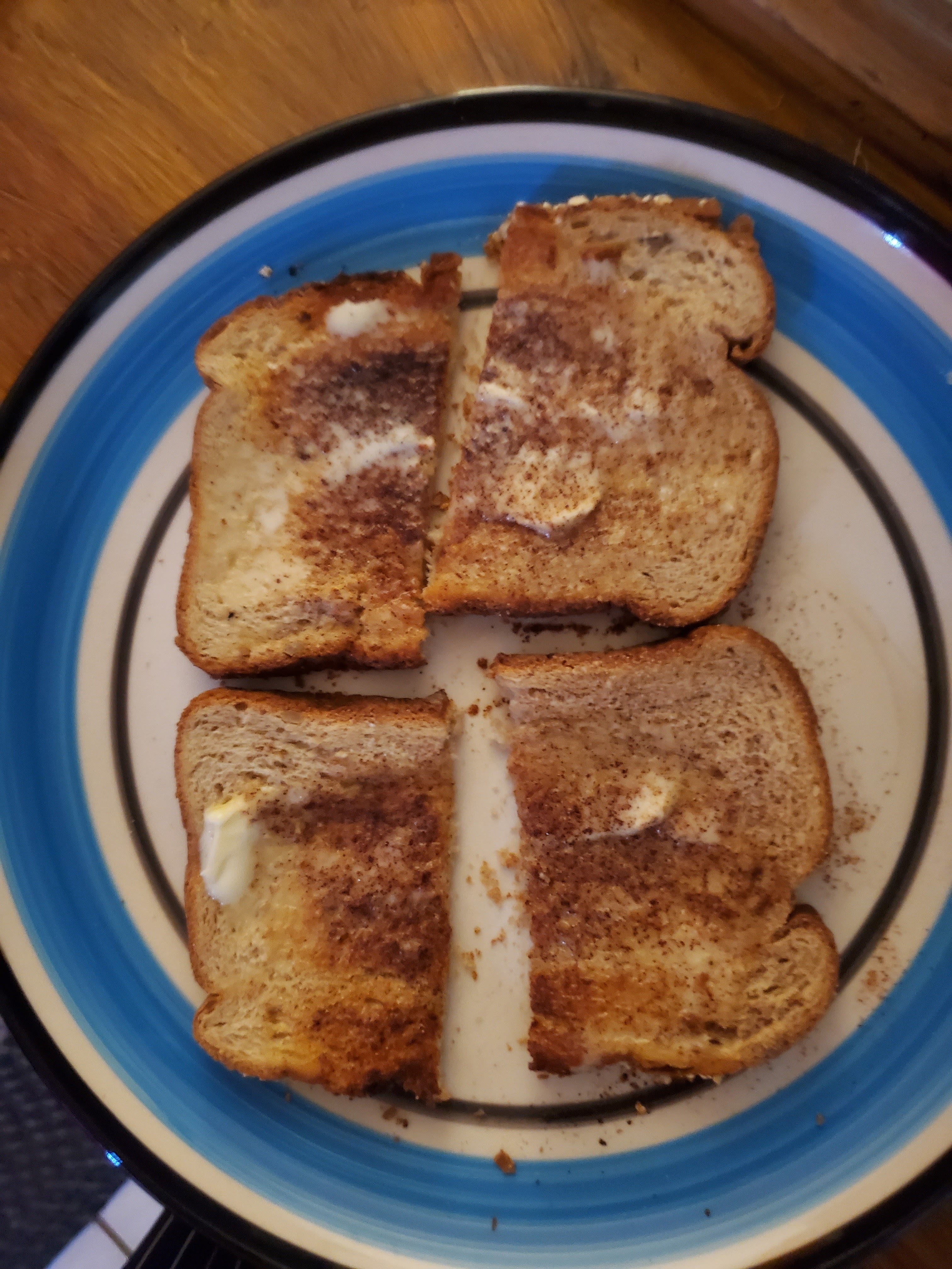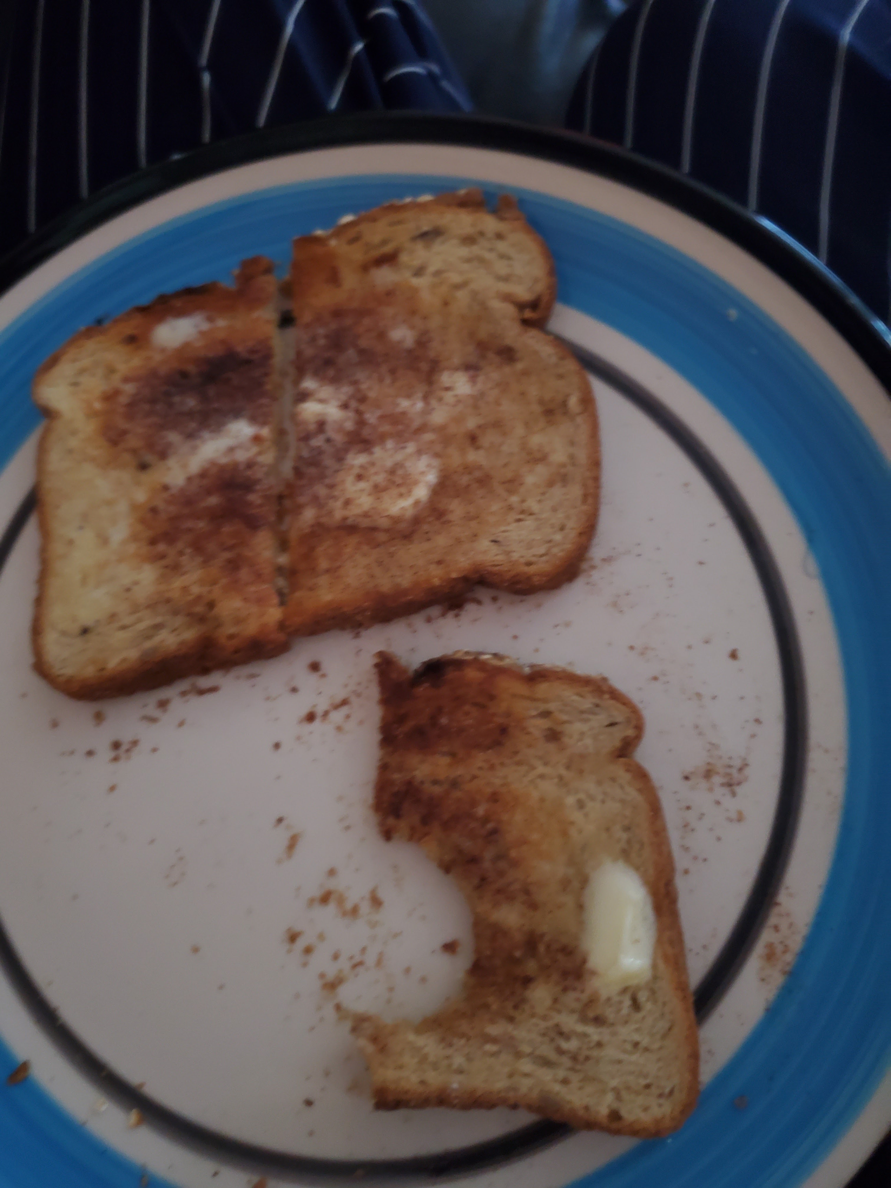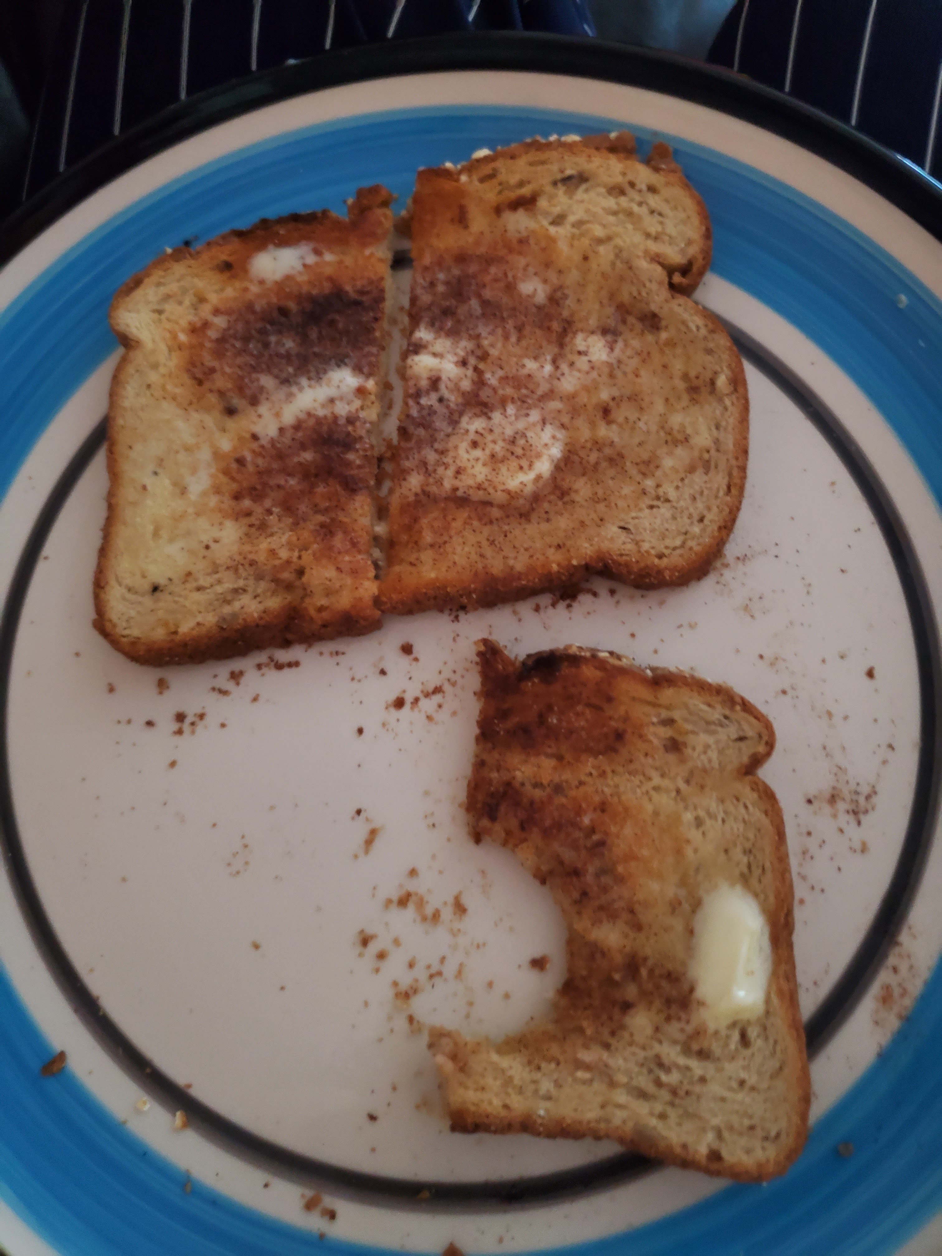 *CINNAMON &SUGAR ON:OAT BRAN TOAST WITH:MARGARINE.