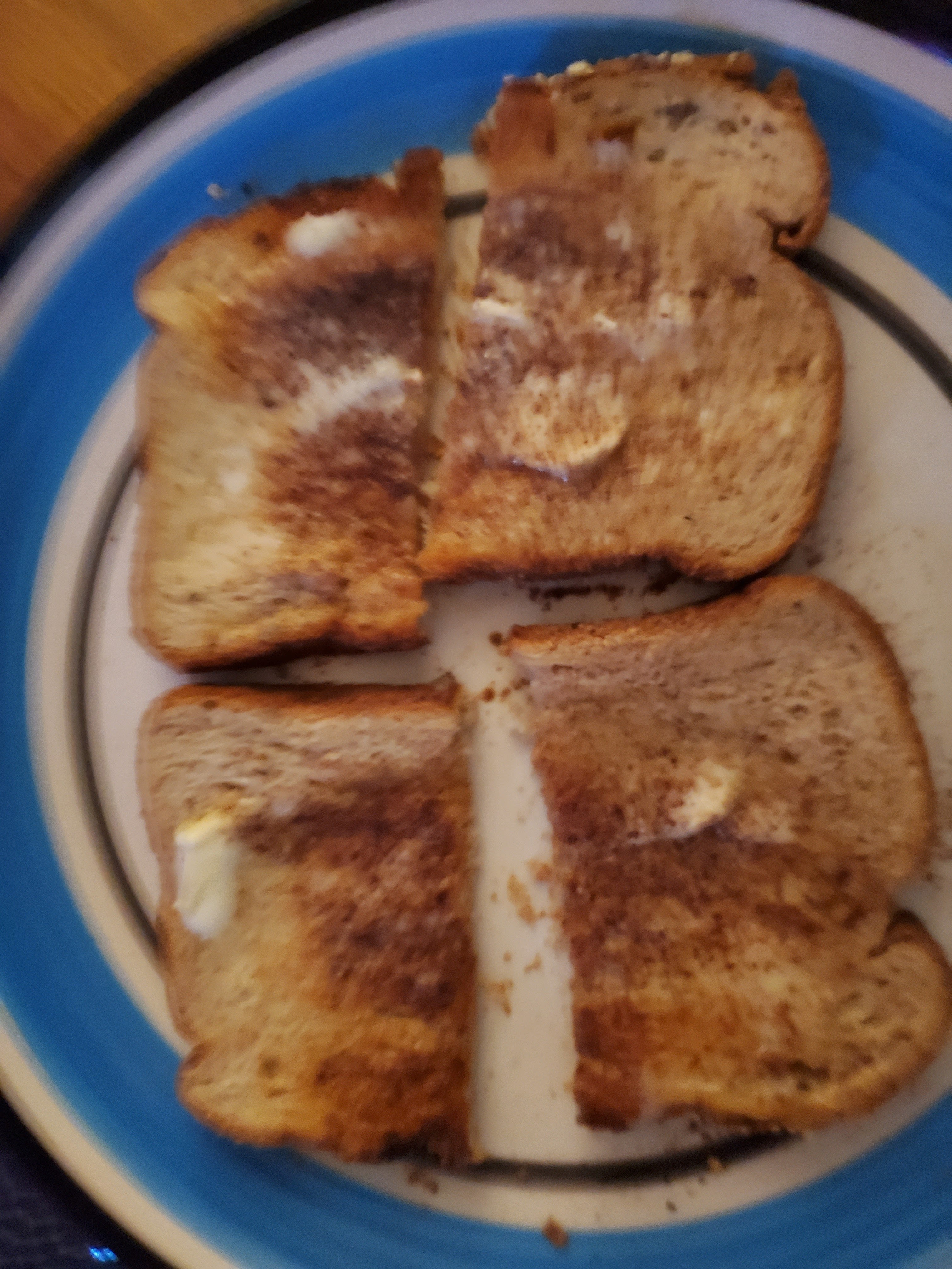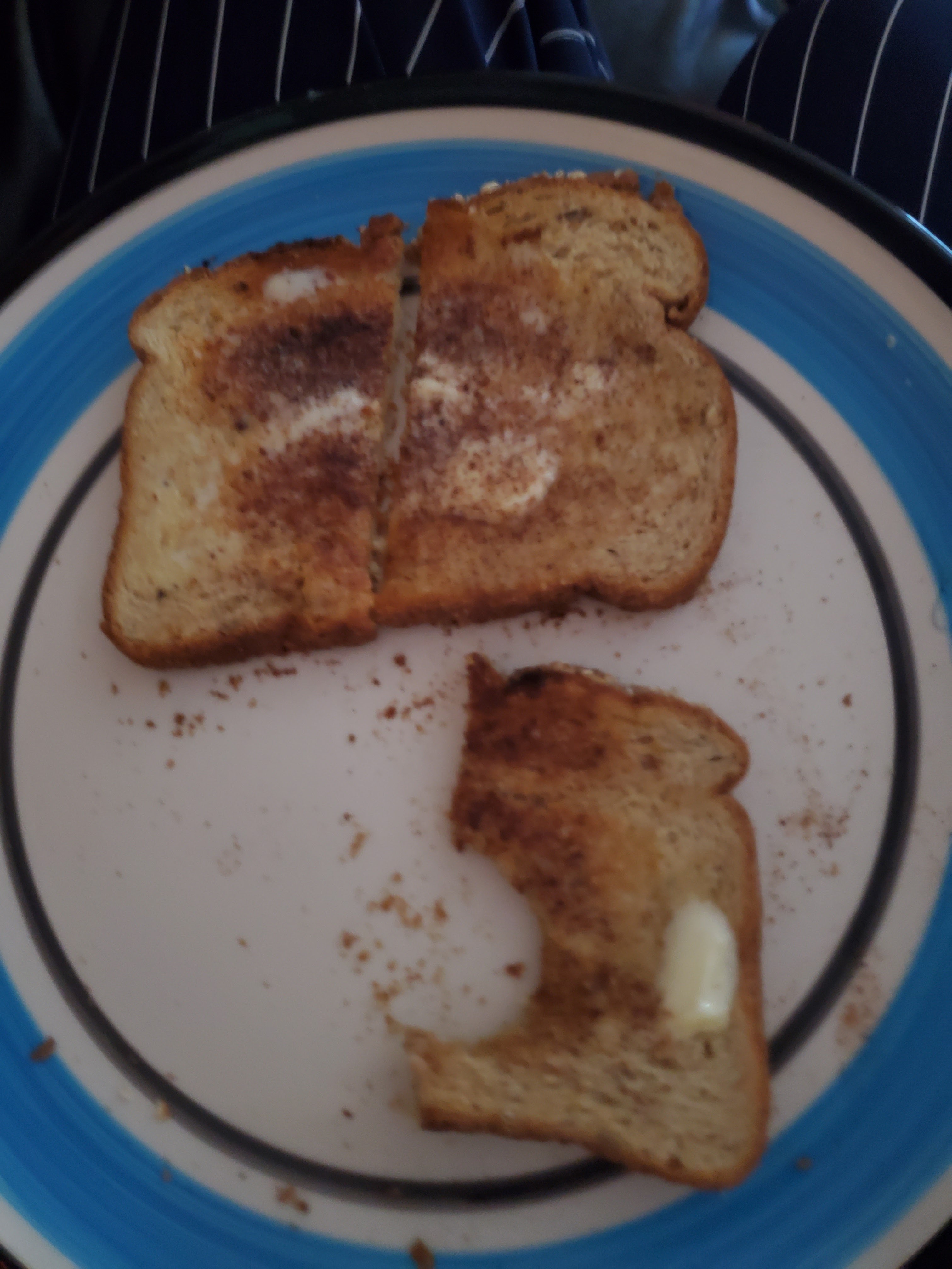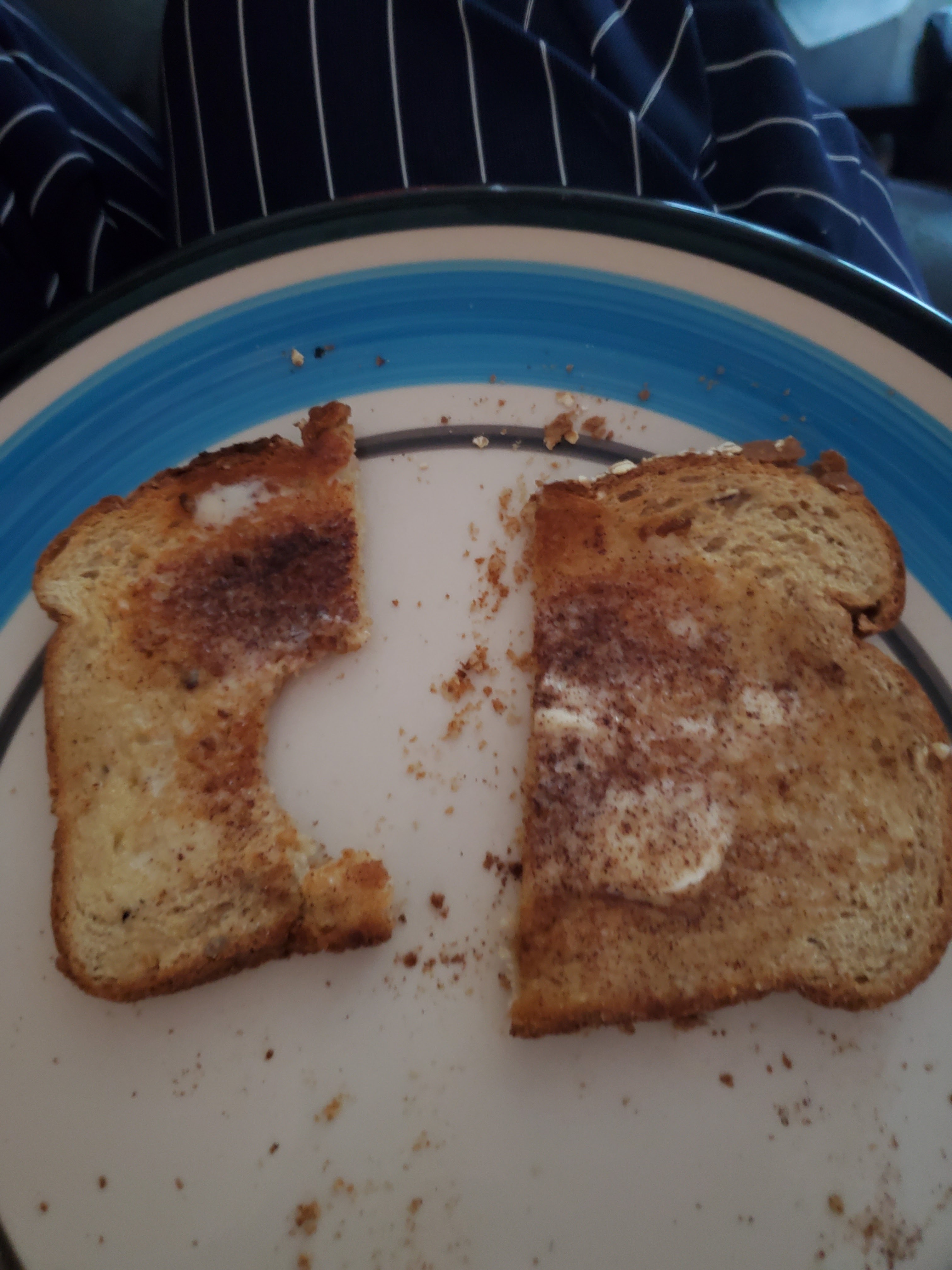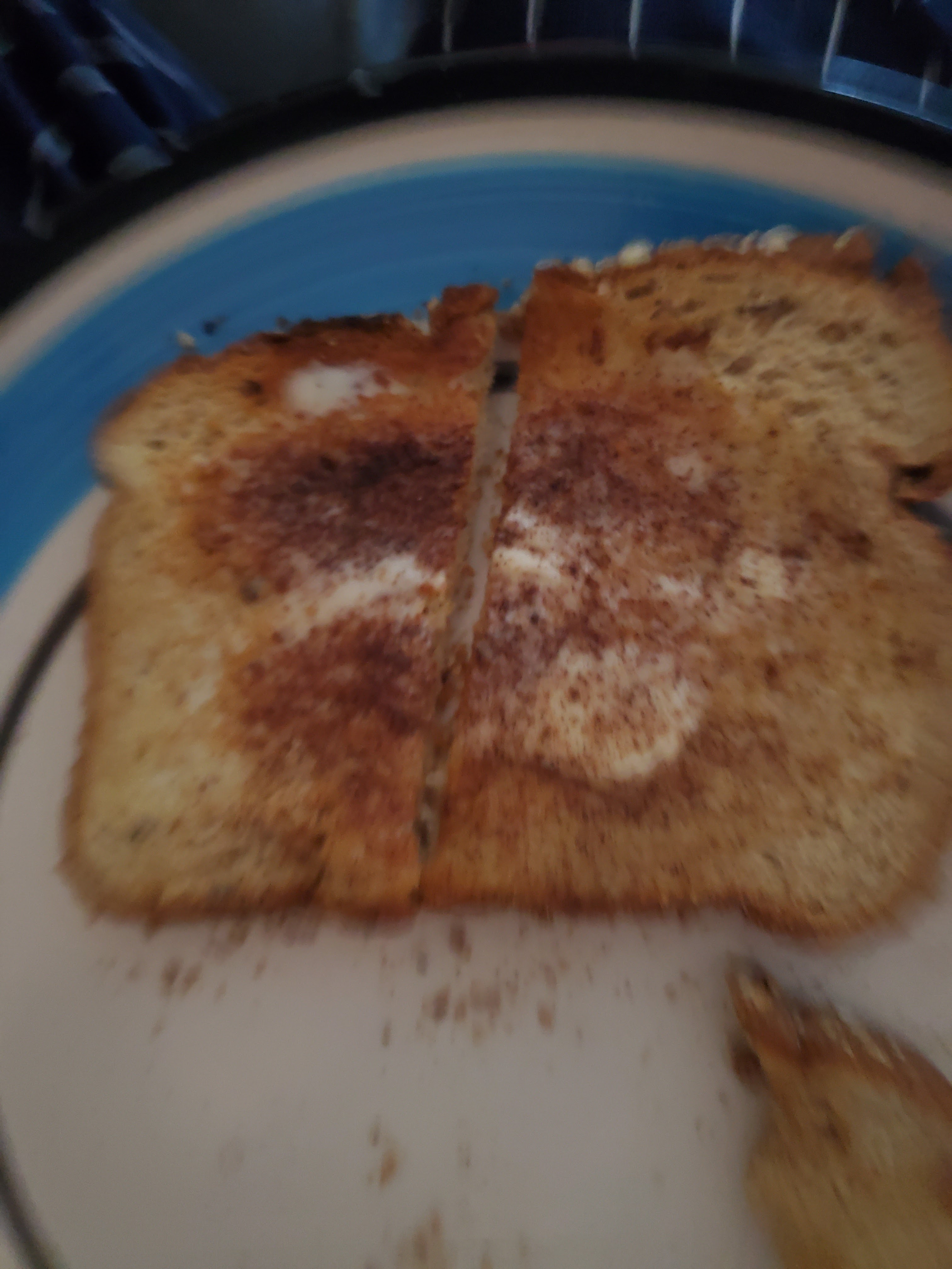 *CINNAMON &SUGAR ON:OAT BRAN TOAST WITH:MARGARINE.