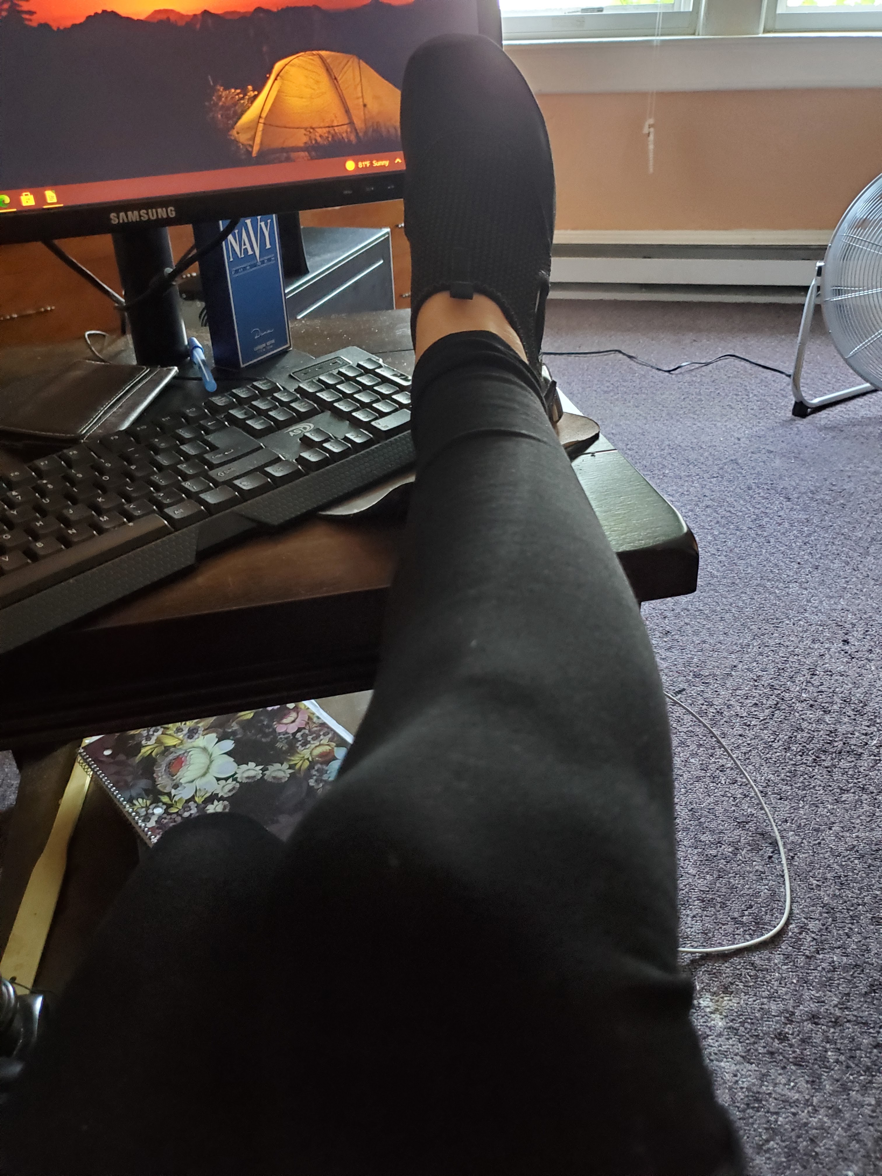 I HAD NO SOCKS OR SHOES ON MY FEET.
